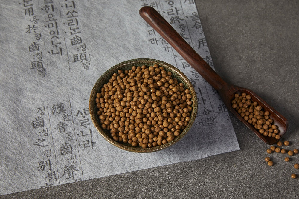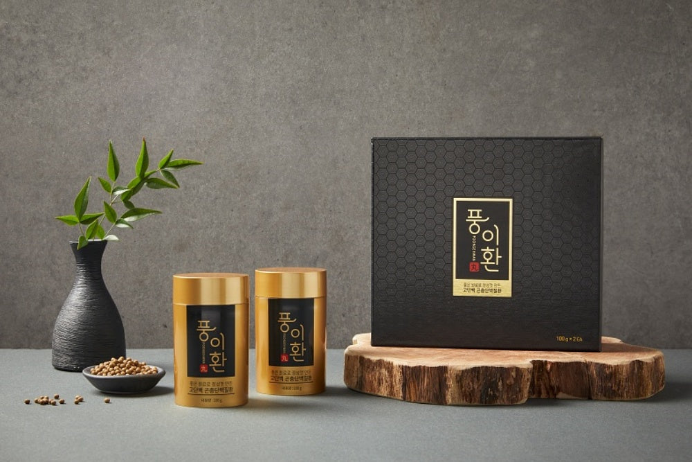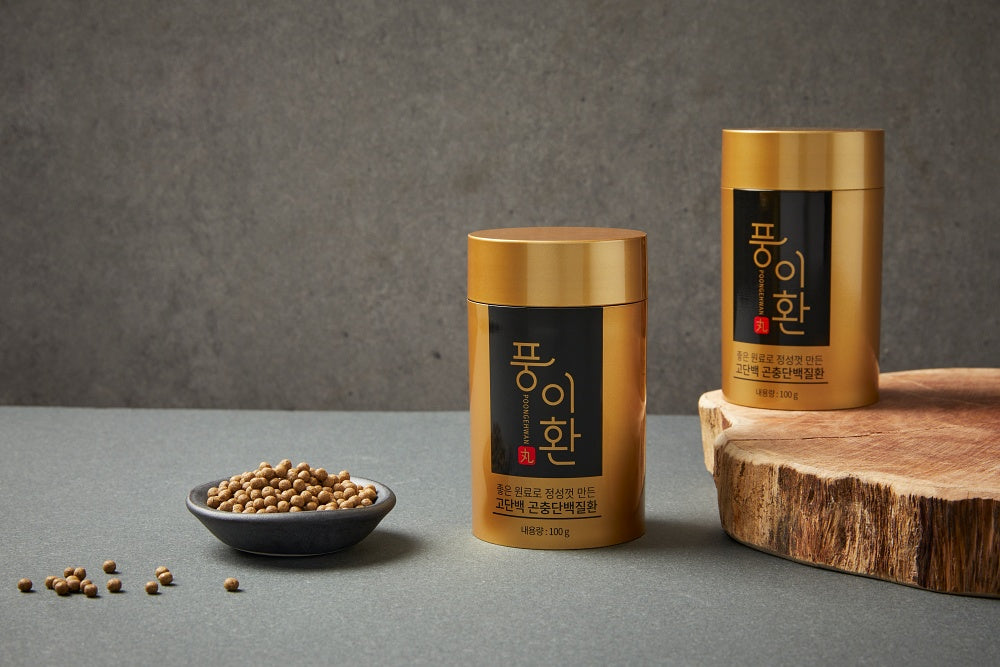 It is highly nutritious food registered with the Ministry of Food and Drug Safety made into pills by mixing mealworms, that is rich in protein, unsaturated fatty acids, vitamin, fiber, essential amino acids, etc., cheong-gukjang powder, taurine, red ginseng extract, etc.
