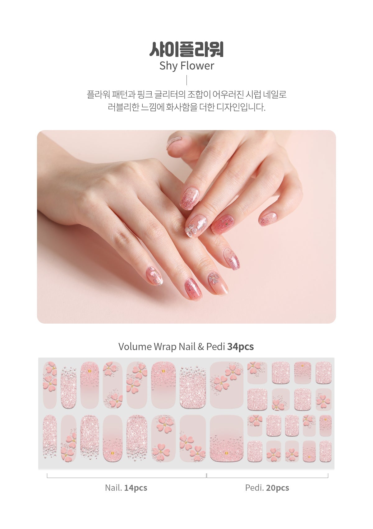 14pcs of Nail items + 20pcs of Pedicure items + Mini Nail File + Wooden Stick + Prep Pads.