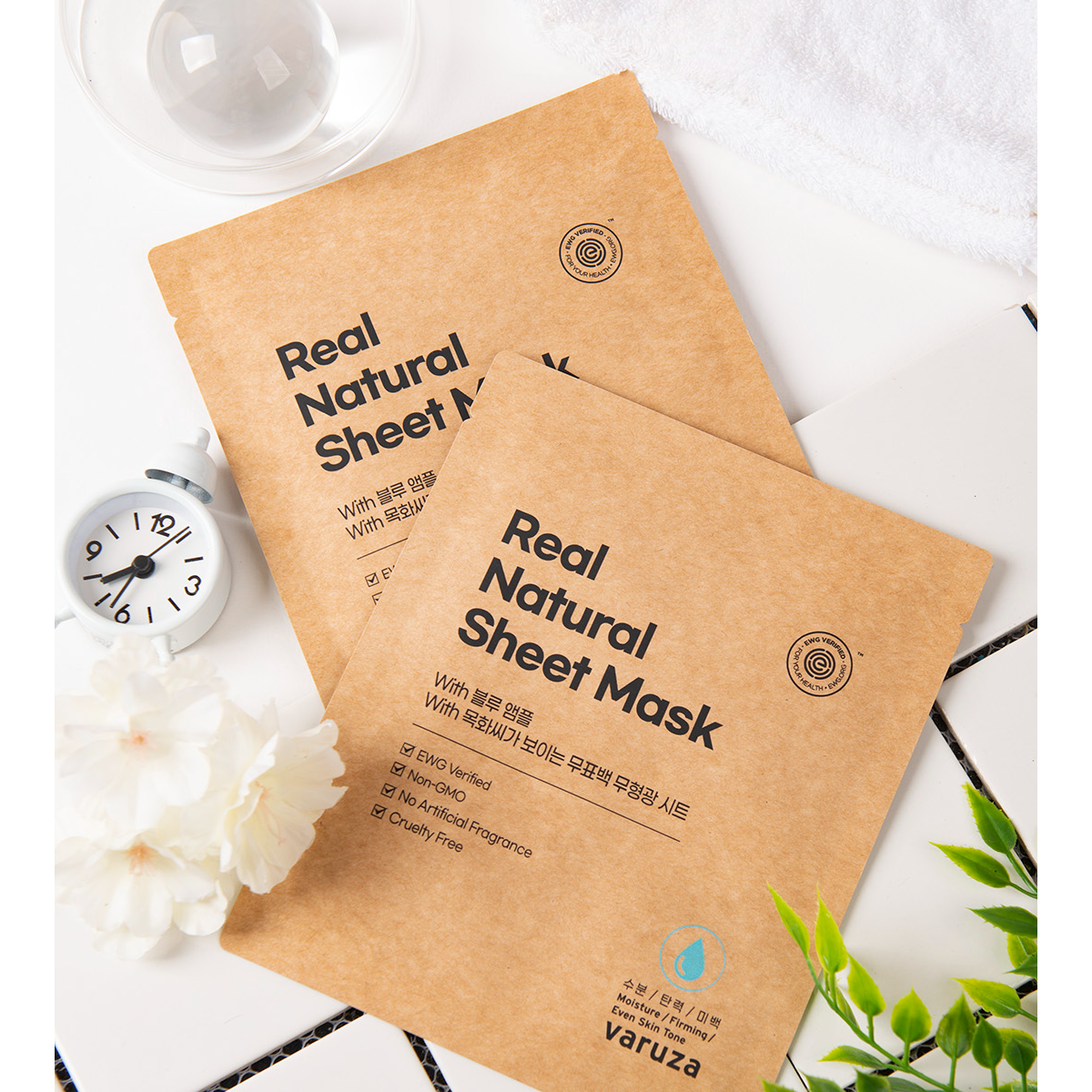 - Real Natural Sheet Mask: Unbleached, non-fluorescent cotton sheet + serum