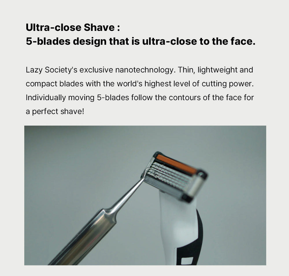 Nanotechnology quintuple blade in partnership with BIC, the world's top 3 razors.