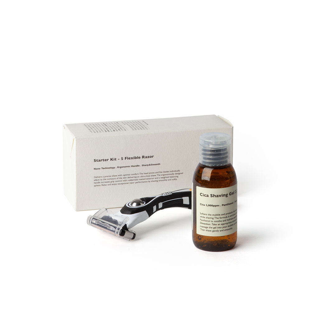 Fuction: Cica Shaving Gel - calms and soothes the skin. Reduces friction between the blade and the face and lower down the risk of scratching. 5-Blade Razor - shave the facial hair.