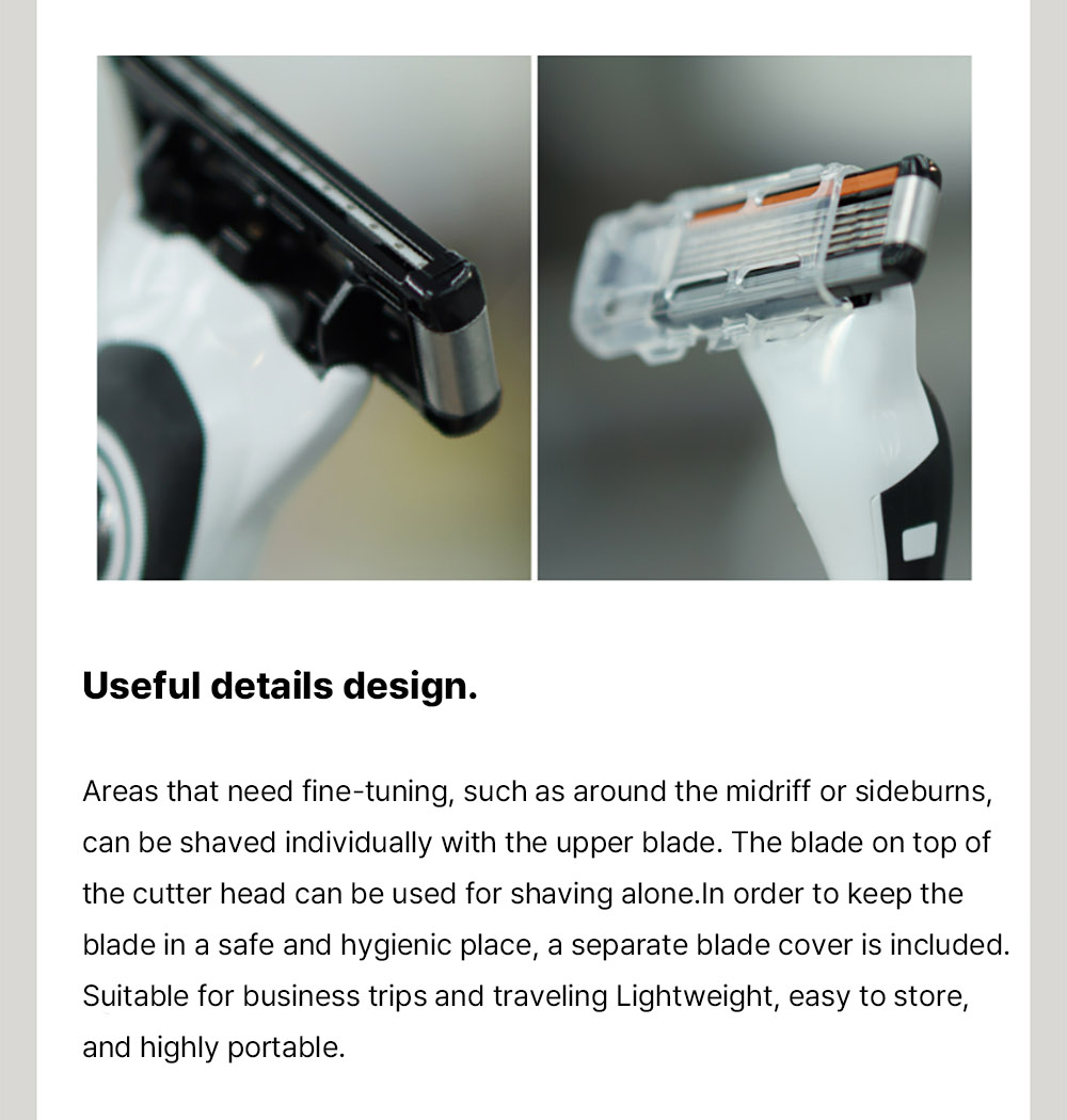 Fuction: Cica Shaving Gel - calms and soothes the skin. Reduces friction between the blade and the face and lower down the risk of scratching. 5-Blade Razor - shave the facial hair.