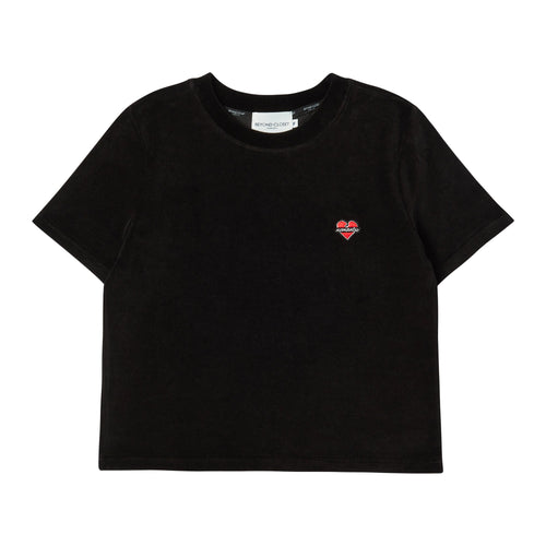 BEYOND CLOSET Women's Edition Nomantic Sports Velvet T-Shirt Black