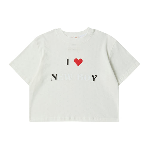 BEYOND CLOSET Women's Edition New Boy Pattern Crop T-Shirt White